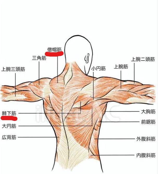 首の後ろの筋肉(僧帽筋・棘上筋・棘下筋など)